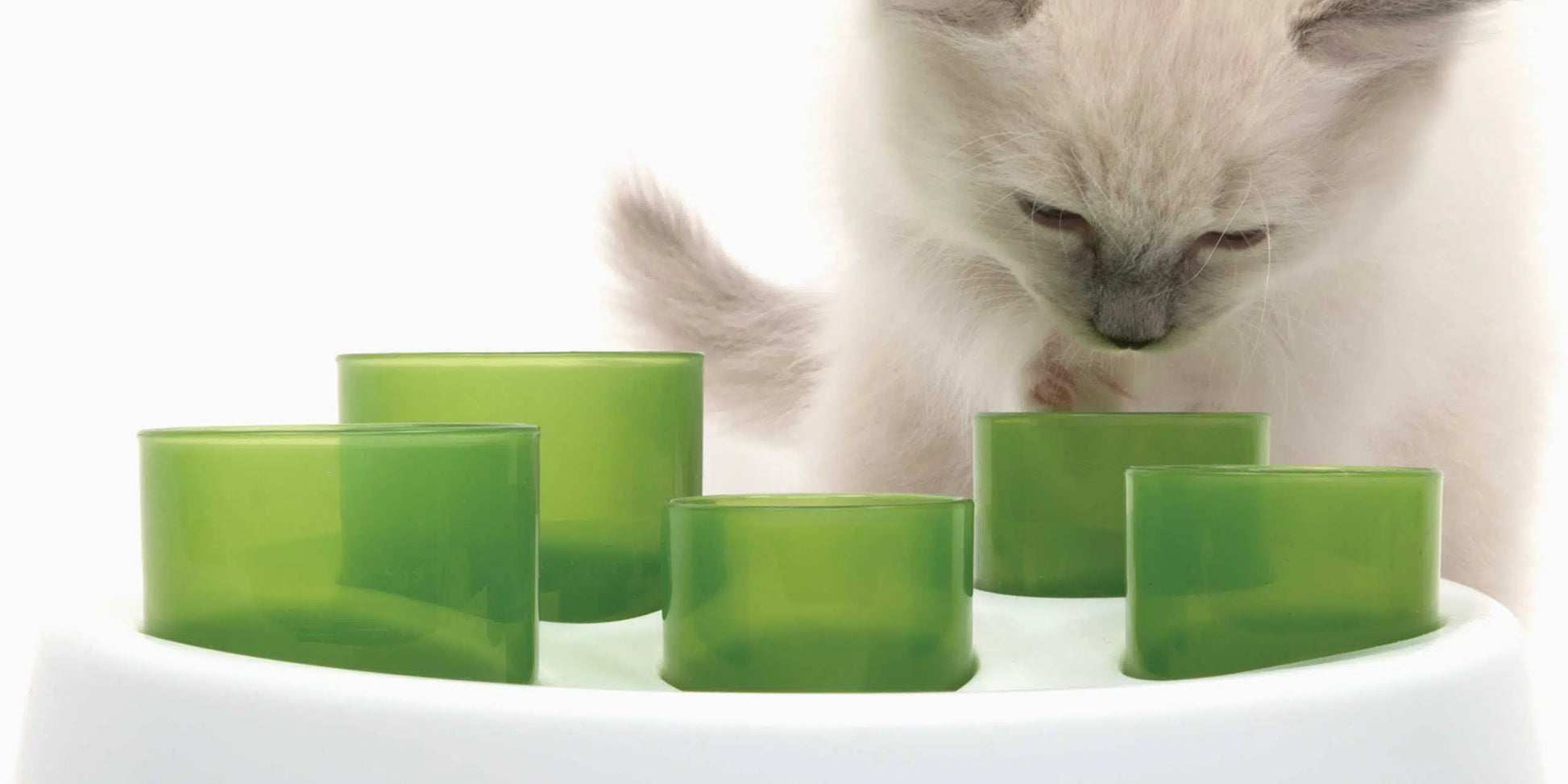 Thanks to their rounded ends, the green cups are paw-friendly, and they also fit almost any cat’s paws! You can also insert (small) toys for some exciting playtime.