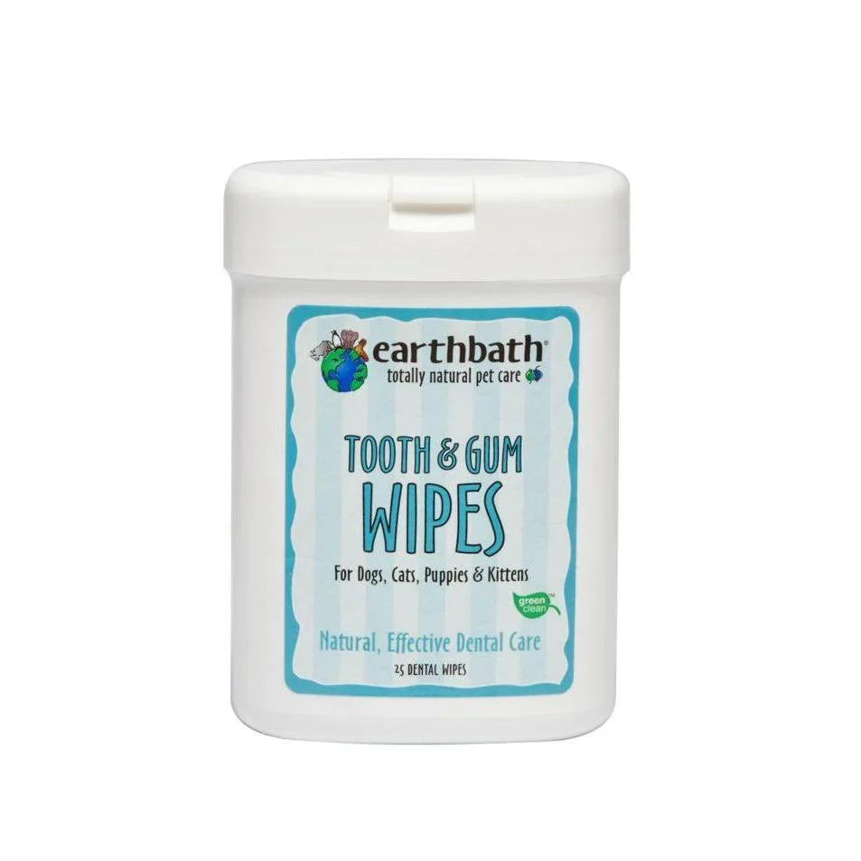 Earthbath Tooth and Gum Wipes are the easy and convenient solution to keeping your pet's mouth clean from plaque, tartar and odor-causing bacteria. Our natural formula is free of parabens, alcohol, and other nasties that don't belong in your pet's mouth. Use daily for best results. Baking soda provides gentle abrasion to help remove build-up and stains and peppermint oil leaves your pet’s breath smoochably fresh! Can be used as a supplement to normal brushing and routine maintenance to fight dental diseases and keep breath fresh. Safe for daily use on kittens, puppies, cats and dogs over 6 weeks of age