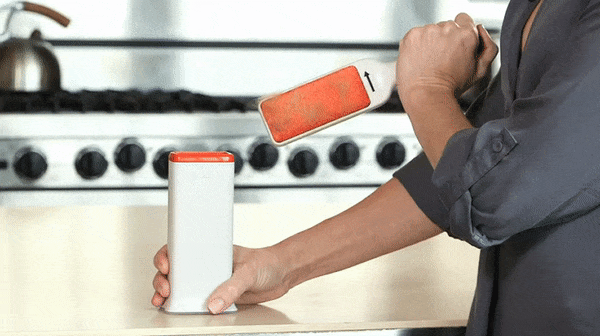 When the brush is full, dunk it into the base. Fibres inside the base clear the brush and trap fur inside, and the brush emerges clear and ready to continue cleaning.