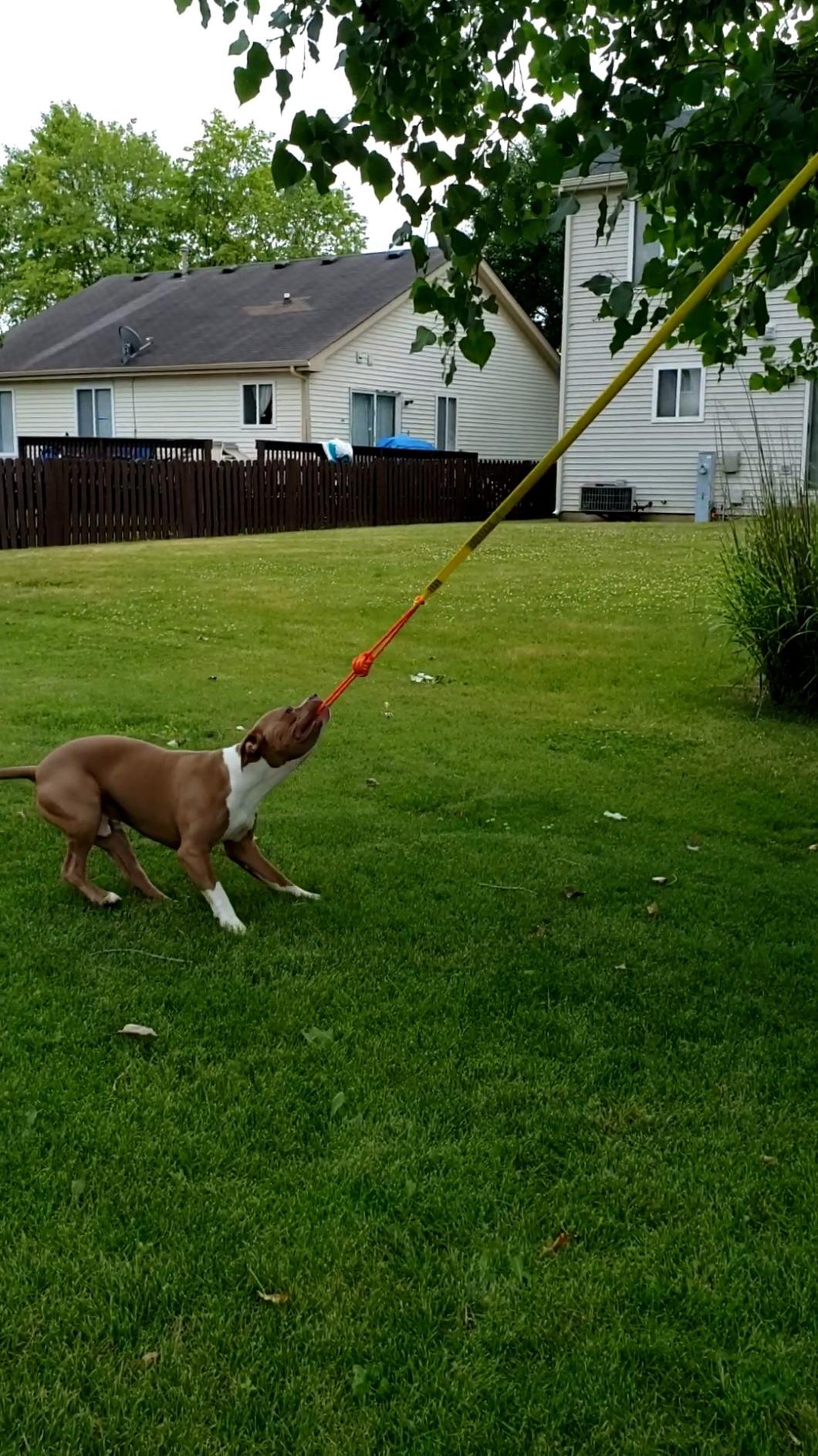 Life gets busy! We all wish we could play with our dogs as much as they want us to, but sometimes we just can't or don't have as much energy as they do. The rope toy is a great toy to fill in the gaps when you can't be playing tug of war or fetch with your dog.