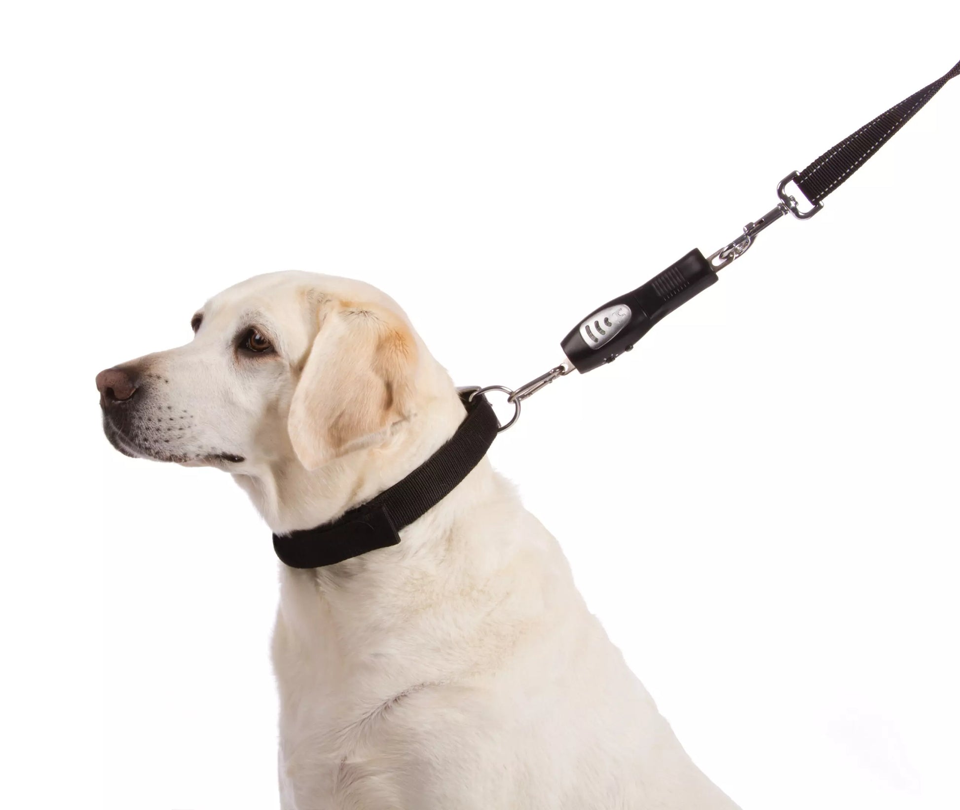 This device attaches between your dog's collar and leash and emits an ultrasonic tone whenever your pup pulls on the leash. The volume of the tone increases the harder your dog pulls, which teaches them to associate the sound with pulling and helps keep them in line.