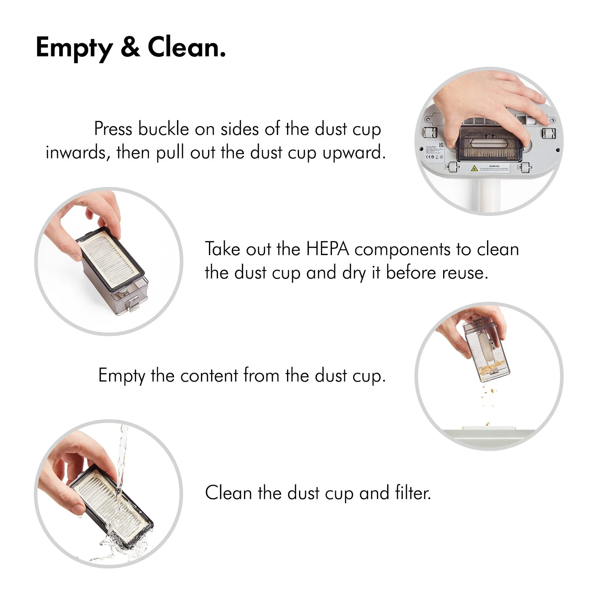 In addition to its impressive cleaning capabilities, this vacuum cleaner is also designed with safety and hygiene in mind. It has a 0.3L dust box that is easy to empty, ensuring that you can dispose of the collected dust and debris safely and hygienically. The vacuum's HEPA filter locks in particles, preventing the spread of allergens and bacteria - HEPA filter ensures that allergens and bacteria are trapped in and not released back into the air.