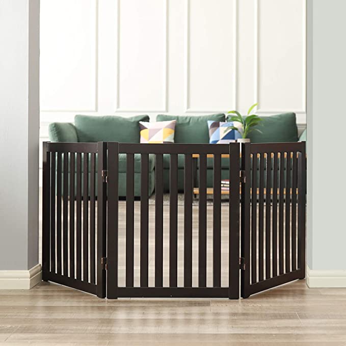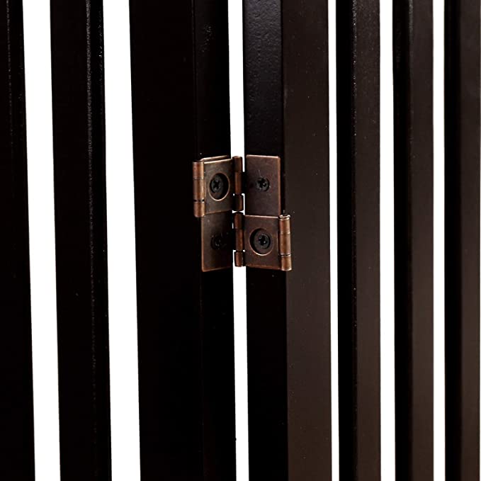 The Wooden Pet Gate is also designed with your pet's safety in mind. The panels have narrow 1.96-inch openings that prevent puppies from sneaking through, and the support feet keep the gate sturdy even when fully extended.